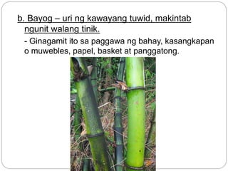 Ginawa nga ng ibon at lumabas ang isang lalaki. Tanging ang mababang-loob na si Kawayan ang sumunud-sunod sa hilip ngmalakas na hangin ang nakatayo at di nasalanta. Fruit fruit punong kawayan the chief generous.