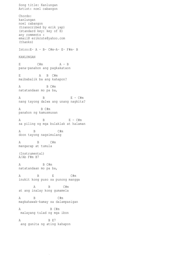 Products You May Like. Pana-panahon ang pagkakataon maibabalik ba ang kahapon. Lyrics Kanlungan - Noel Cabangon intro pana-panahon ang pagkakataon maibabalik ba ang kahapon verse 1 natatandaan mo pa ba nung tayong dalway unang magkita panahon ng kamusmusan sa piling ng mga bulaklak at halaman doon tayo nagsimula mangarap at tumula verse 2 natatandaan mo pa ba inukit kong puso sa punong mangga at ang inalay kong.