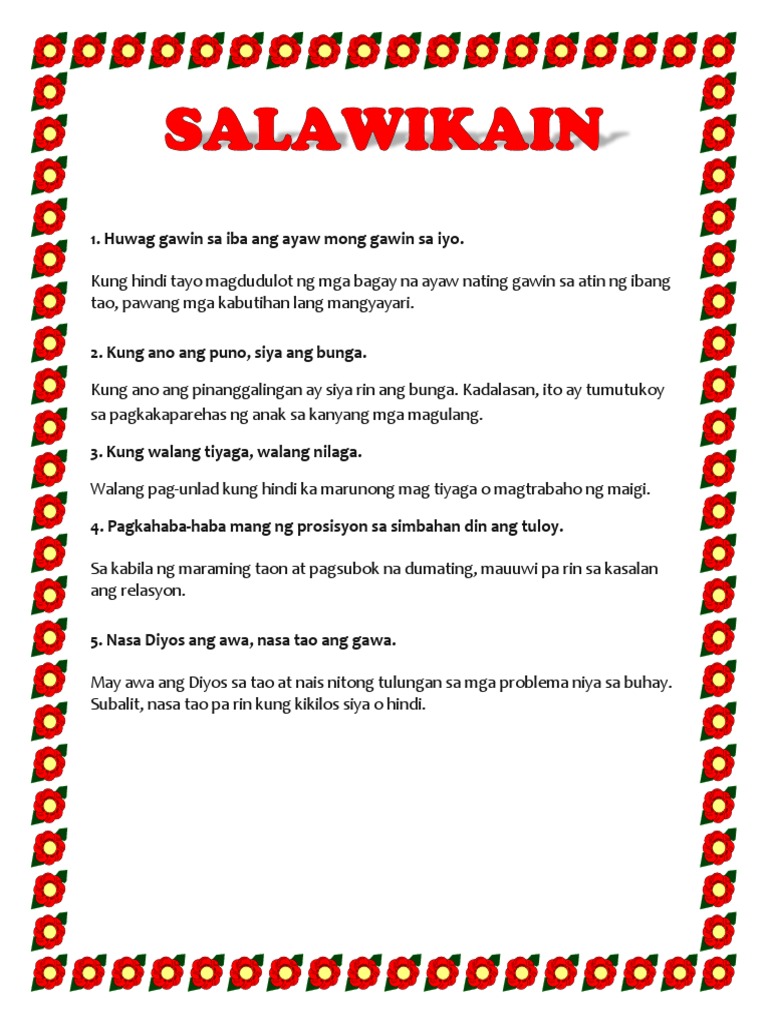 Kahulugan Ng Salawikain Kung Ano Ang Puno Siya Ang Bunga Sakahulugan